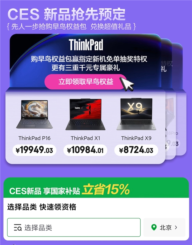 时期行为,品的“1元重磅早鸟权柄包”用户可正在京东采办CES新,并备案后获胜采办,卡及电脑双肩包等正在内的超值好礼可得回包蕴适用键盘鼠标、京东E。中其,板滞师、华硕指定2026年新品采办ThinkPad、雷神、,kPad指定机型可到场抽免单大奖还可享专属早鸟权柄:采办Thin,us 140W锋行者电源及五年无忧保并获赠LTE无线同伴、thinkpl;享抽五折、抽2000元E卡特权采办雷神、板滞师指定新款电脑可,垫套装送鼠;华硕无畏Pro16采办Intel新品,早鸟权柄领取四重好礼则可于新品上市后凭,东E卡、华硕都邑背包及a豆无线鼠标含价格288元咪咕会员卡亚星20元京。