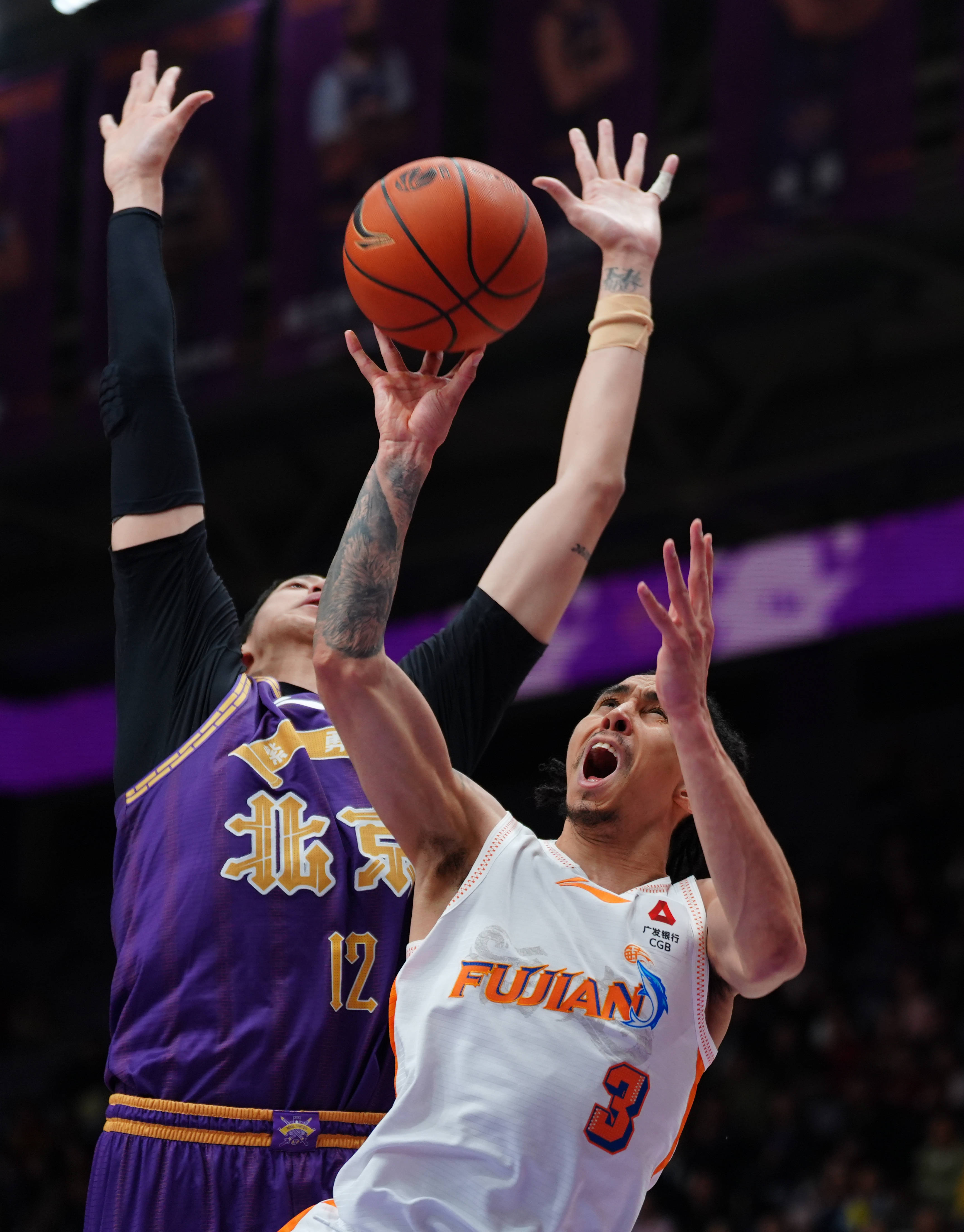 12日1月,文旅队球员特莱斯正在角逐中争抢篮板球北京控股队球员佩里(左)和福筑晋江旅体育)篮球——CBA常规。者 谢晗 新华社记摄