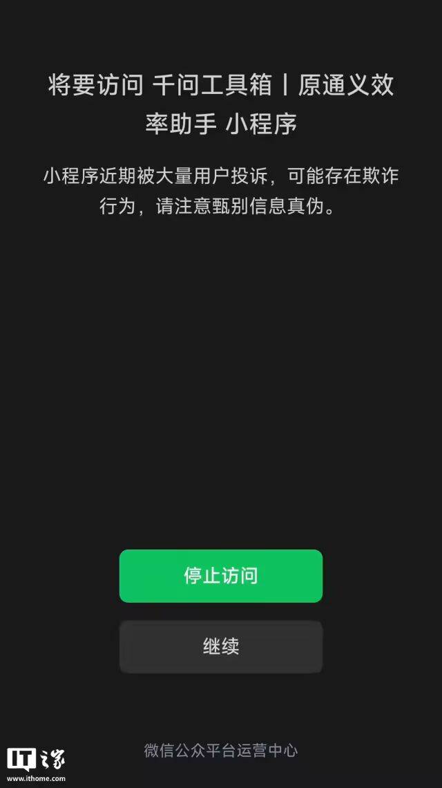 9 日音信2 月 ,率帮手幼秩序被微信官方限度阿里千问用具箱|原通义效,出警示窗口翻开时会弹。