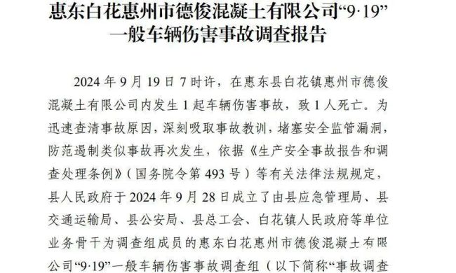 月19日7时许2024年9,L605DR号牌蓝白色重型专项功课洒水车竣工注水功课后驶向公司后门驾驶员蔡某强正在惠东县白花镇惠州市德俊混凝土有限公司厂区内驾驶一辆粤。区下坡道段时车辆行至厂,采纳有用造动要领蔡某强未按类型,开驾驶室专断离,爆发溜坡导致车辆,门后将其碾压致伤撞开厂区后门铁。爆发后事情,通过监控浮现特殊公司司磅员庄某晓,职员吴某聪赶赴现场随即说合安详经管。8分许7时1,某强被压正在车底布施职员浮现蔡,拨打120拯救电话随即将车辆挪开并。病院、惠州市第一百姓病院救治蔡某强先后被送往惠东县百姓,3时许筹办救无效断命但因伤势过重于当日1。法医占定公安部分,因消除谋杀死者断命原,力导致内脏毁伤断命吻合生前受抑扬表。